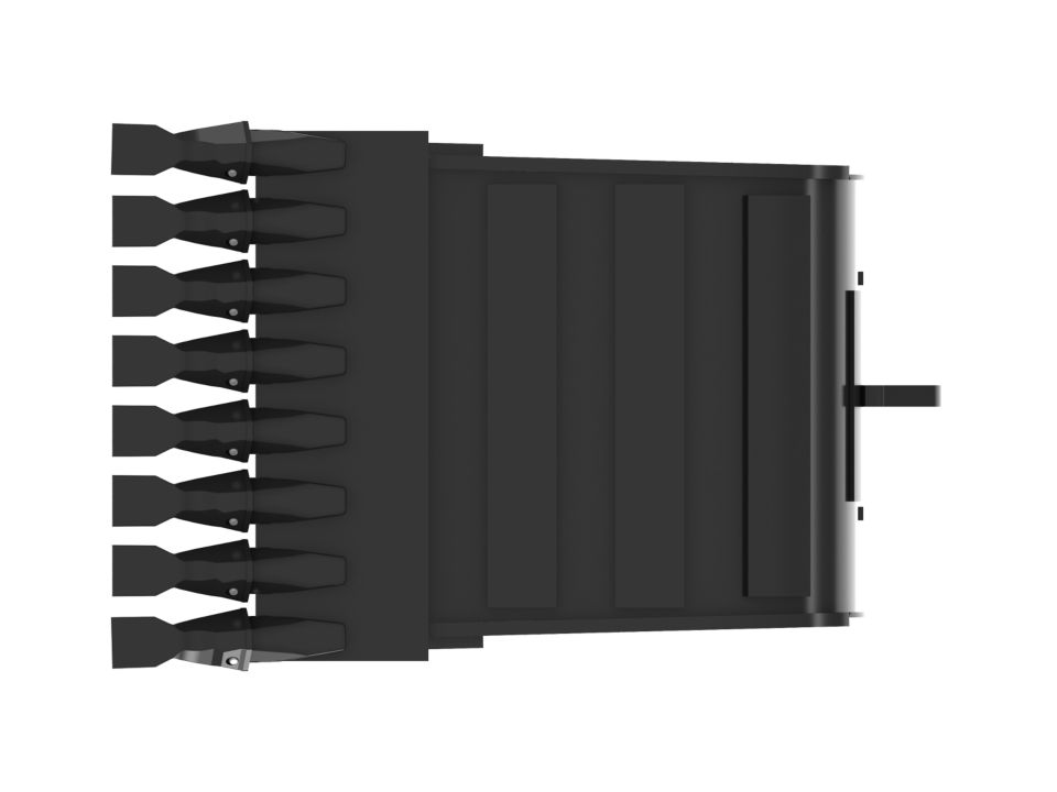Enhanced bucket shape allows material to flow more easily. Tapered bucket sidewalls allow for easy dumping of sticky material.