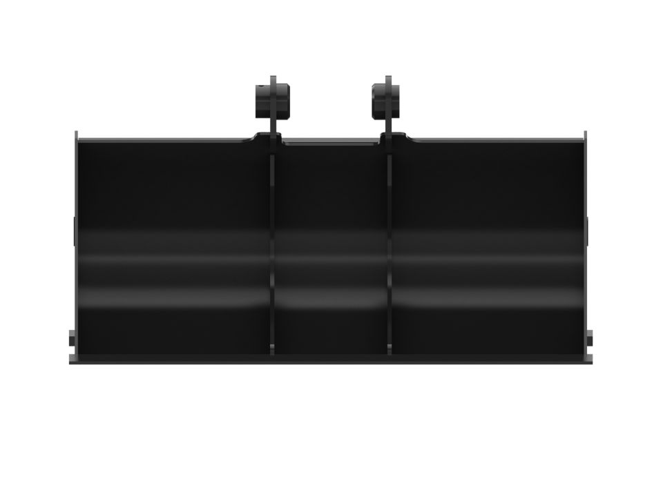 Versatile bucket for applications such as cleaning wide trenches, loading materials, grading, dressing slopes and more.