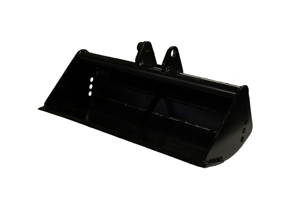 Versatile bucket for applications such as cleaning wide trenches, loading materials, grading, dressing slopes and more.