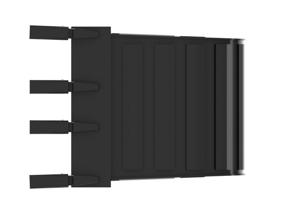 Enhanced bucket shape allows material to flow more easily. Tapered bucket sidewalls allow for easy dumping of sticky material.