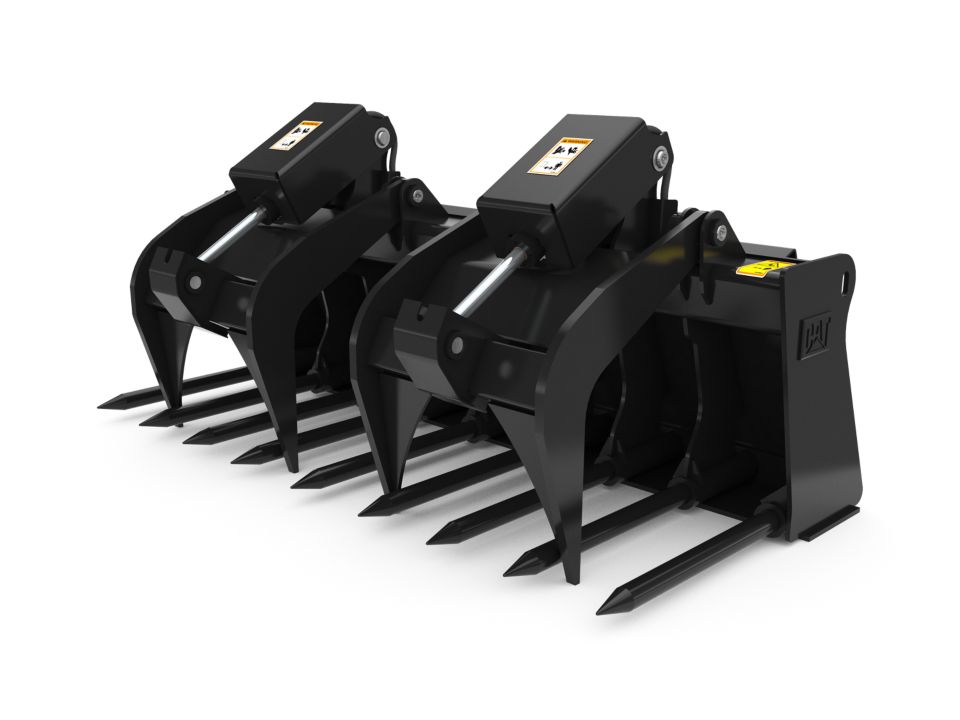 Cat® Industrial Grapple Forks for Cat Skid Steer Loaders, Compact Track Loaders, and Compact Wheel Loaders are designed to easily handle a wide array of bulky, loose, pierceable objects encountered in demolition, industrial, construction, recycling, and other aggressive applications.