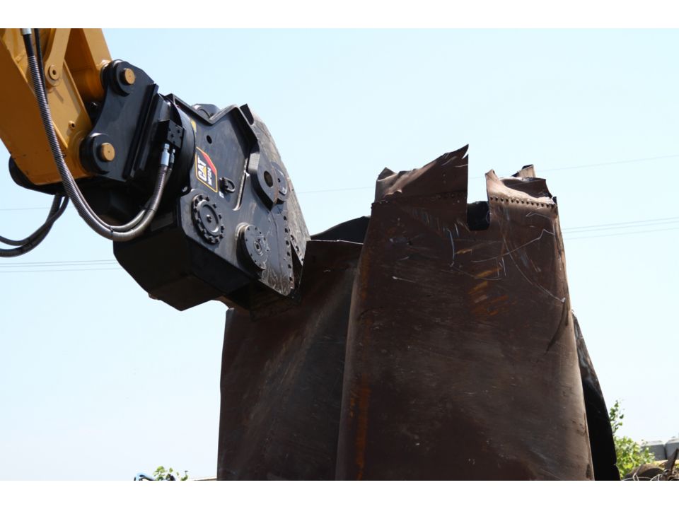 Tank Shear jaws make short work of storage tanks and plate steel. Specially-designed jaws produce straight, smooth cuts on barges, railway cars and grain, water, oil and fuel tanks.
