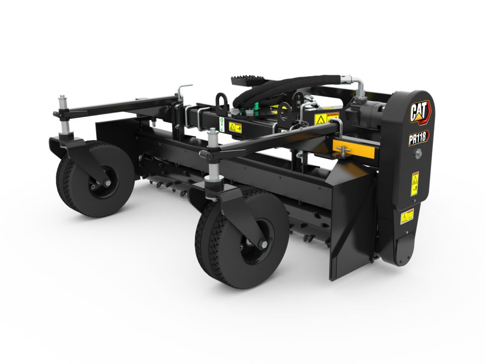 Cat® Power Box Rakes are ideal for clearing and preparing soil in general construction trench restoration, golf course construction and athletic field maintenance. They offer the versatility to de-thatch, remove old lawns and weeds, grade, level, rake, remove debris and prepare seedbeds with one work tool. Its angling ability allows the operator to windrow collected debris for easy pickup and removal. The consistent milling action creates an ideal seedbed for excellent germination results, laying the groundwork for a perfect lawn. Wet, dry, weedy, hard and rocky soil can be dried, flattened, pulverized and conditioned for seed in one step.