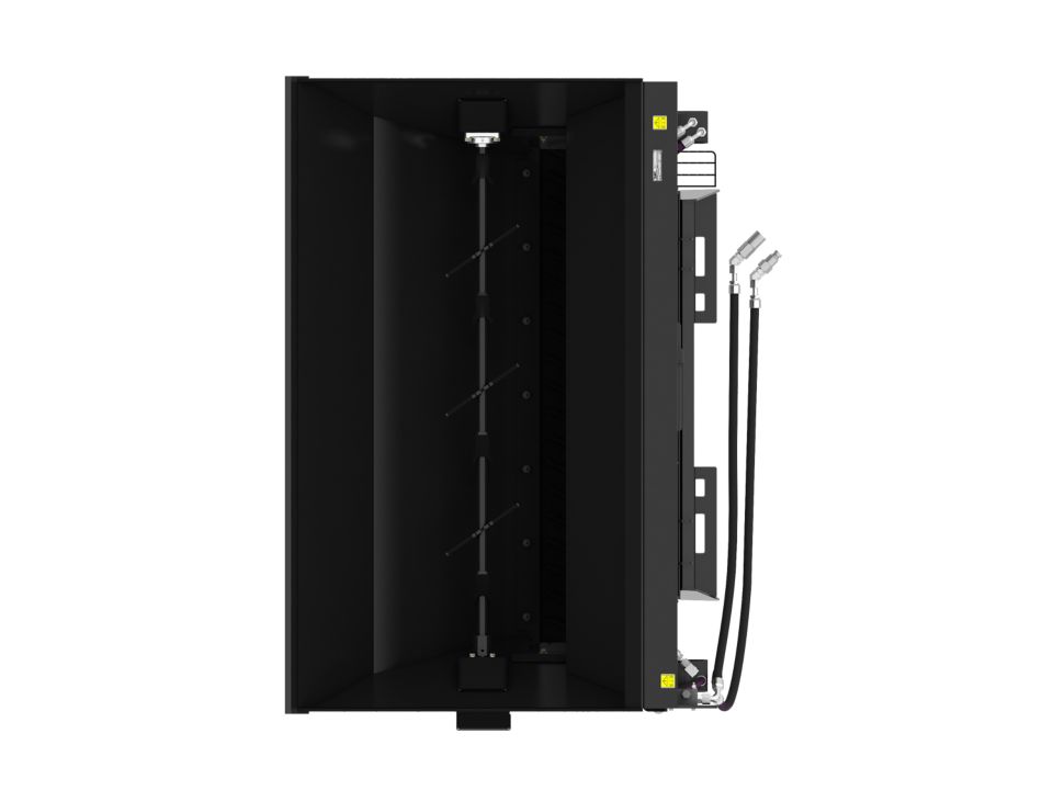 Manually adjustable discharge doors on both sides regulate the volume of discharged material. Thick plating reinforces the doors for long lasting performance.