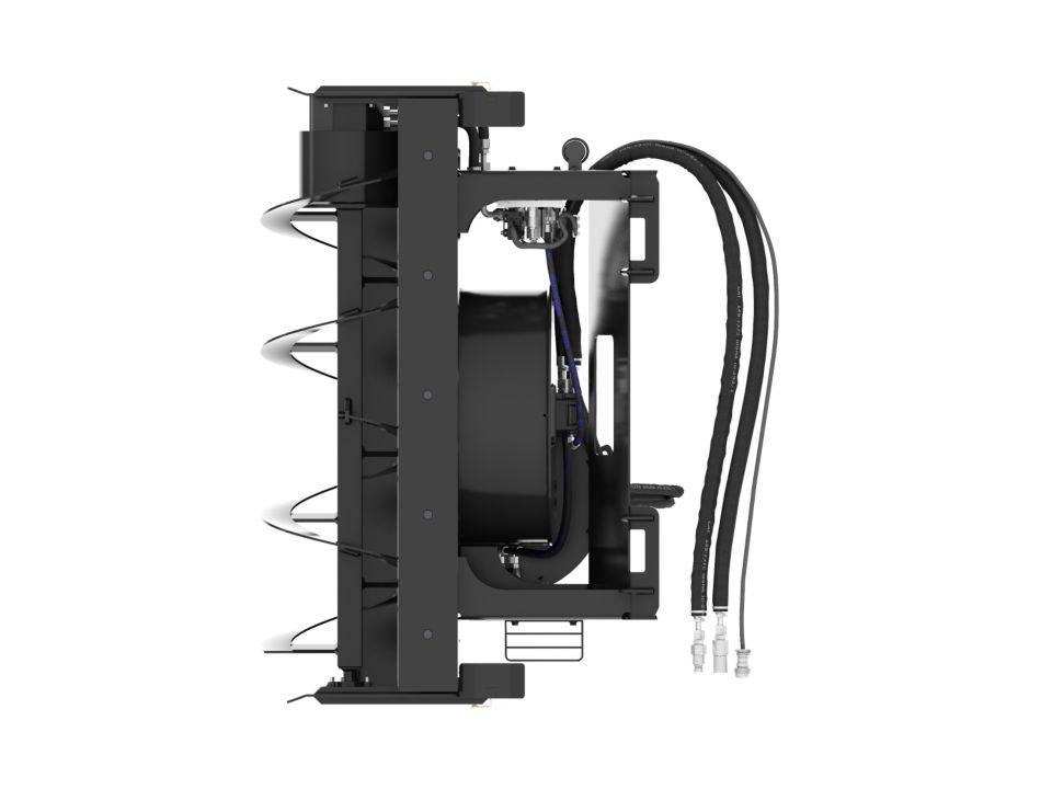 270 degrees of rotation permits snow discharge to front or sides of machine preventing snow blow back on operator. Hydraulically controlled deflector makes it easy to control how far snow is thrown.