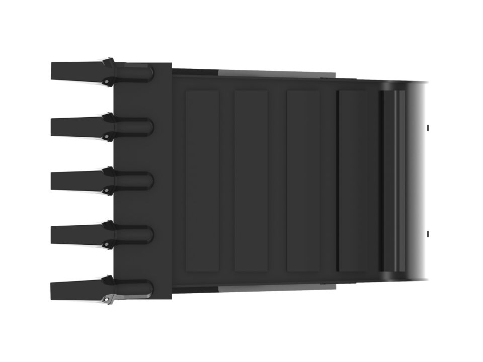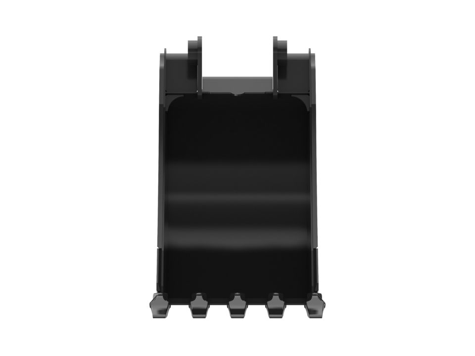 Enhanced bucket shape allows material to flow more easily. Tapered bucket sidewalls allow for easy dumping of sticky material.