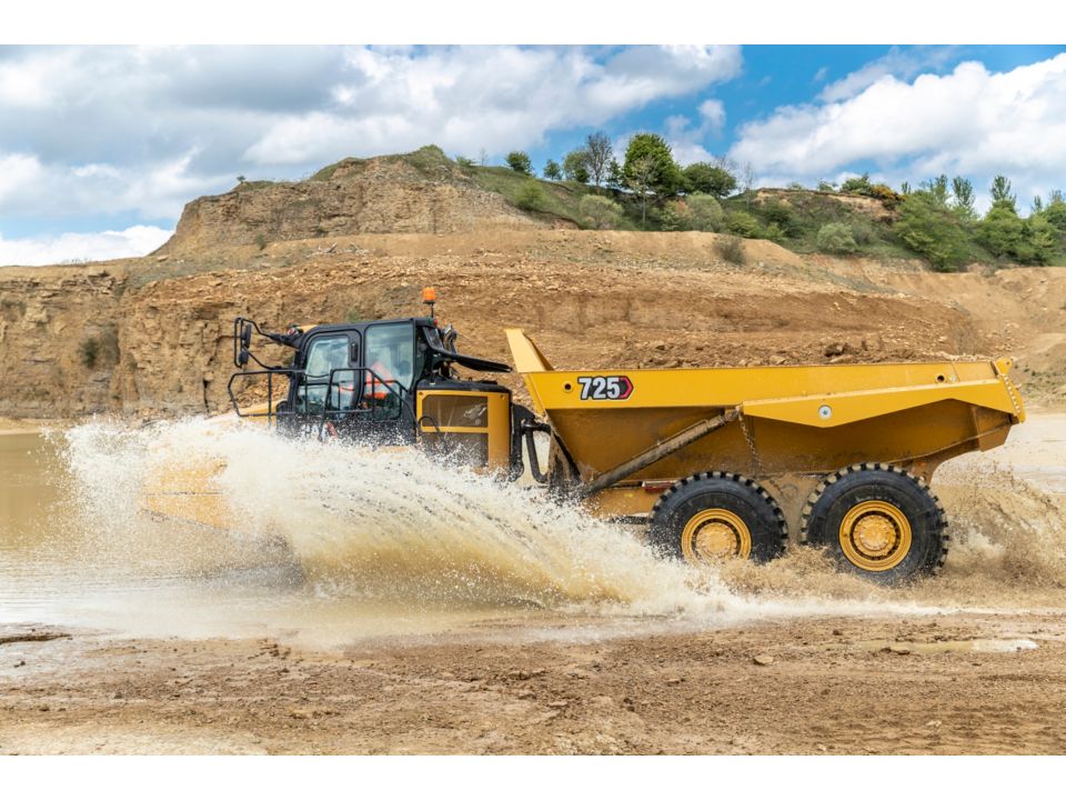 NoteAn optimum system match gives you a major productivity advantage. The 725 is an excellent match for the Cat 349/352 and 336 Hydraulic Excavators and Cat 972, 966, 962, and 950 Wheel Loaders. Having matched loading and hauling tools results in increased production and lower system costs per unit of volume moved.