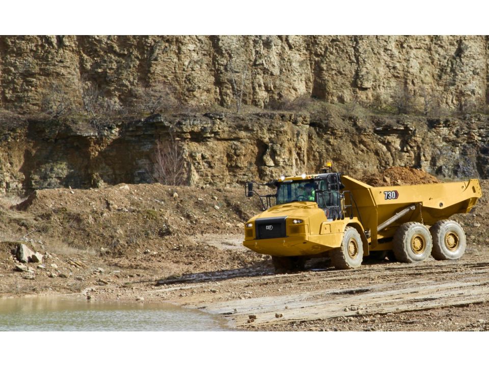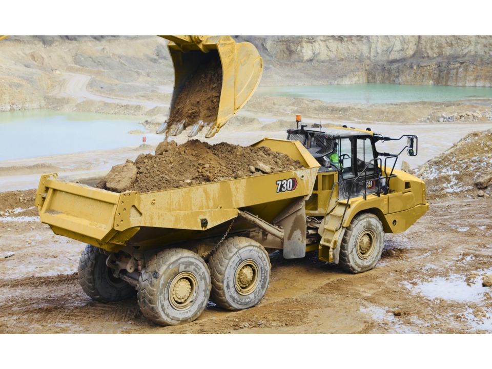 NoteAn optimum system match gives you a major productivity advantage. The 730 is an excellent match for the Cat 349/352 and 336 Hydraulic Excavators and Cat 972, 966, 962, and 950 Wheel Loaders. Having matched loading and hauling tools results in increased production and lower system costs per unit of volume moved.