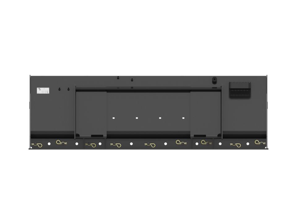 The lower box channel is pre-drilled to accept various combinations of pin-on fork tines.