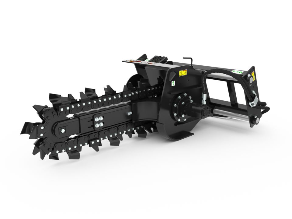 Optional chain types and cutting widths are available for specific soil, digging requirements and trench widths. These chain types include Standard, Combo, Terminator, and Rockfrost.
