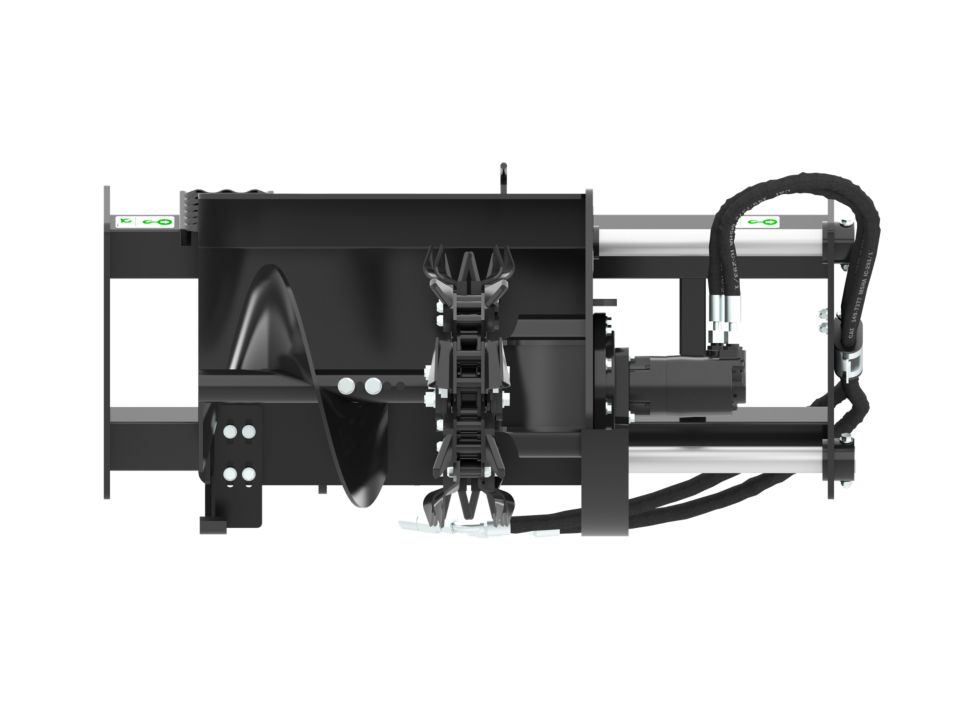 Large diameter bolt-on spoil auger improves loose soil removal from trenching area and allows for quick, easy removal and servicing.