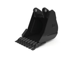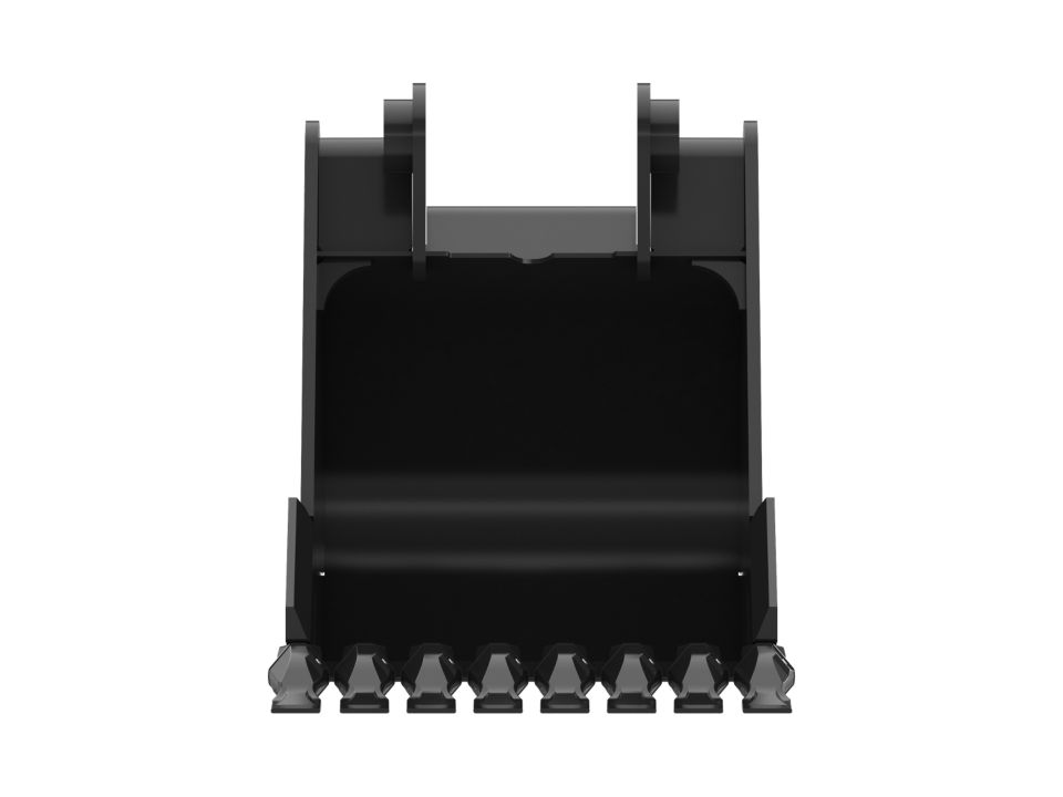 Enhanced bucket shape allows material to flow more easily. Tapered bucket sidewalls allow for easy dumping of sticky material.
