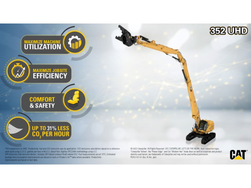 - The 352 UHD emits up to 25% less CO2 than the previous 345C.*