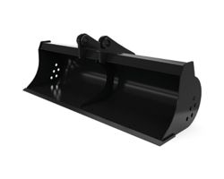 Versatile bucket for applications such as cleaning wide trenches, loading materials, grading, dressing slopes and more.