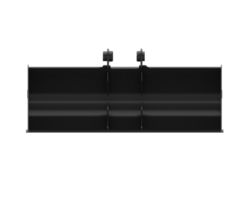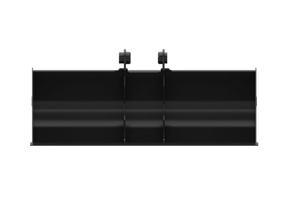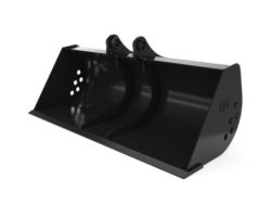 Versatile bucket for applications such as cleaning wide trenches, loading materials, grading, dressing slopes and more.