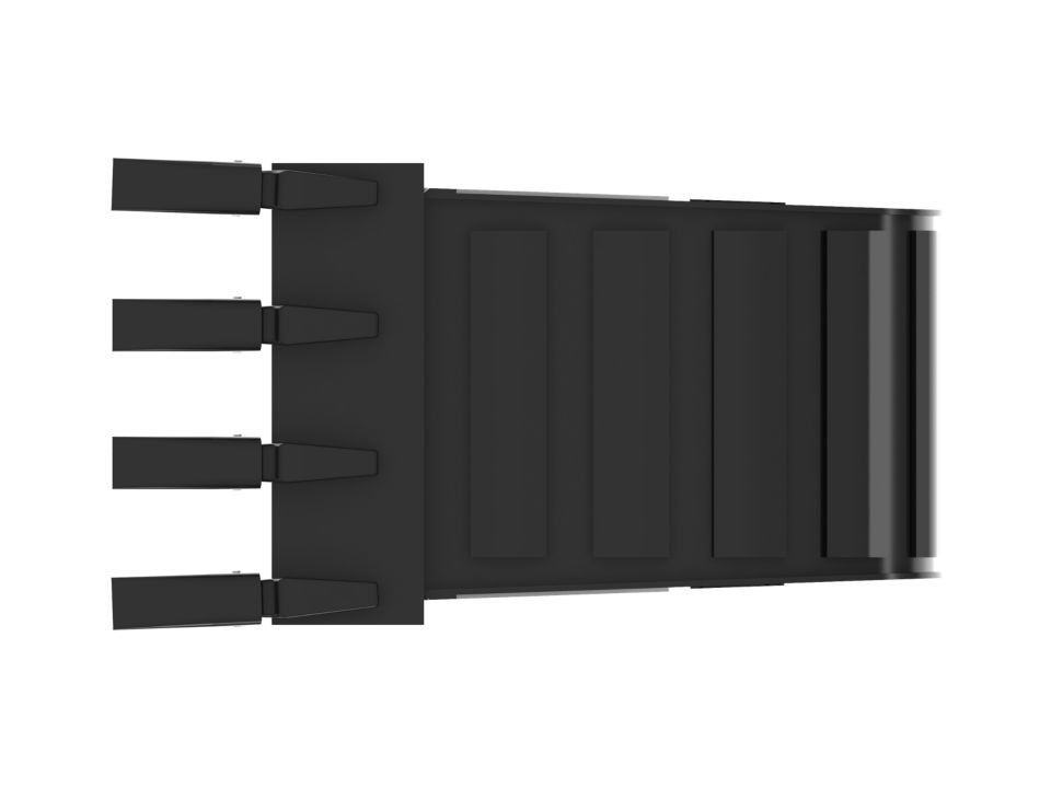 Enhanced bucket shape allows material to flow more easily. Tapered bucket sidewalls allow for easy dumping of sticky material.