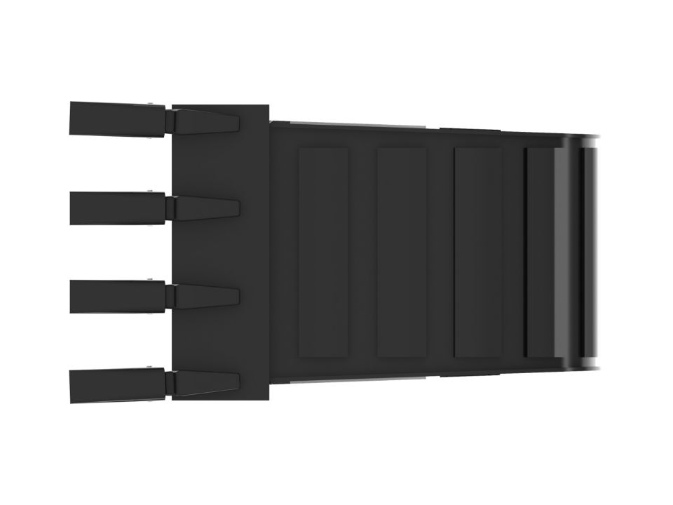 Enhanced bucket shape allows material to flow more easily. Tapered bucket sidewalls allow for easy dumping of sticky material.