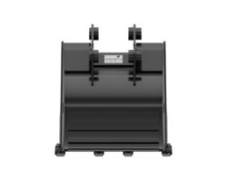 Enhanced bucket shape allows material to flow more easily. Tapered bucket sidewalls allow for easy dumping of sticky material.