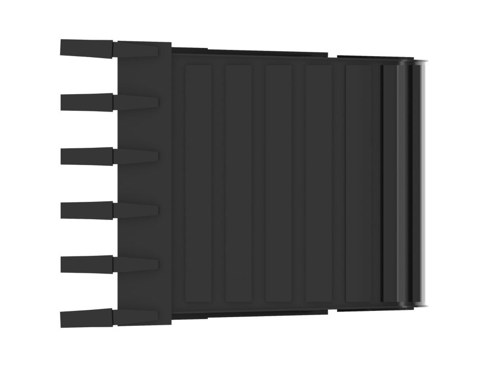 Enhanced bucket shape allows material to flow more easily. Tapered bucket sidewalls allow for easy dumping of sticky material.