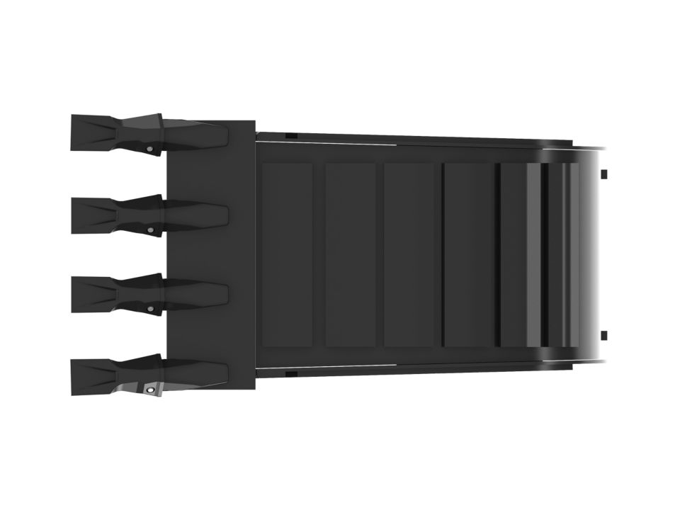 Enhanced bucket shape allows material to flow more easily. Tapered bucket sidewalls allow for easy dumping of sticky material.