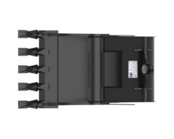 Enhanced bucket shape allows material to flow more easily. Tapered bucket sidewalls allow for easy dumping of sticky material.