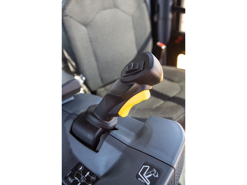 • Pressurized cab featuring Next Gen Seat with 9-inch travel, active cooling and heating, adjustable lumbar support, seat cushion tilt adjustment, and air-adjustable bolsters on the seat and backrest.