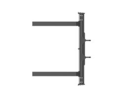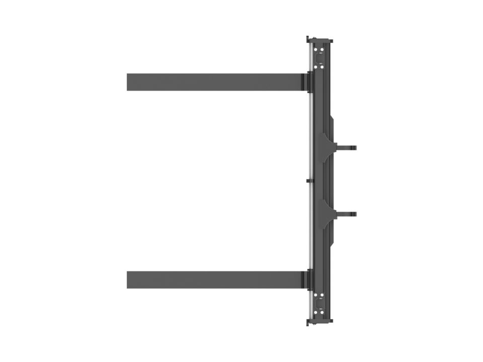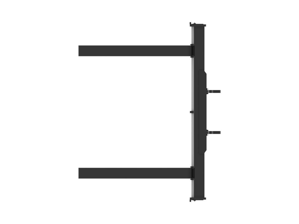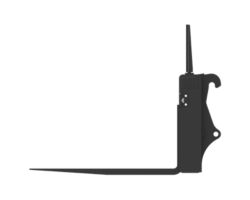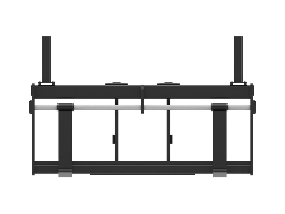 Notched rail-type carriage design allows fork tines to be easily re-spaced or changed and locked into place.