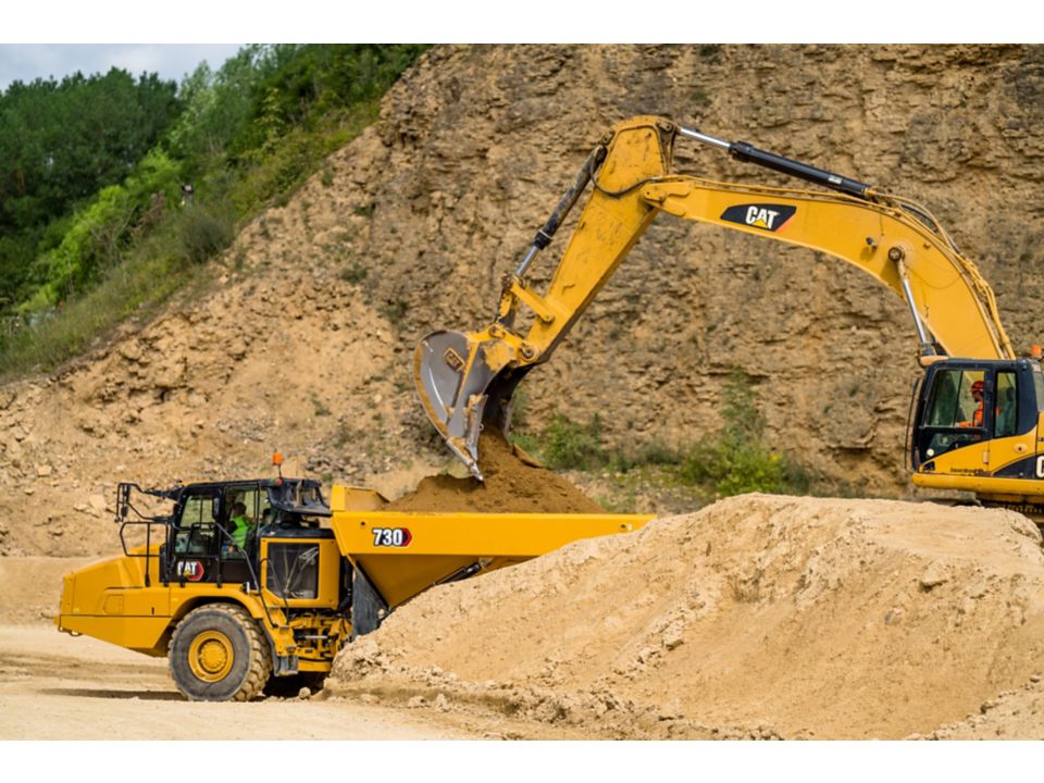 NoteAn optimum system match gives you a major productivity advantage. The 730 is an excellent match for the Cat 350/352 and 336 Hydraulic Excavators and Cat 972, 966, 962, and 950 Wheel Loaders. Having matched loading and hauling tools results in increased production and lower system costs per unit of volume moved.