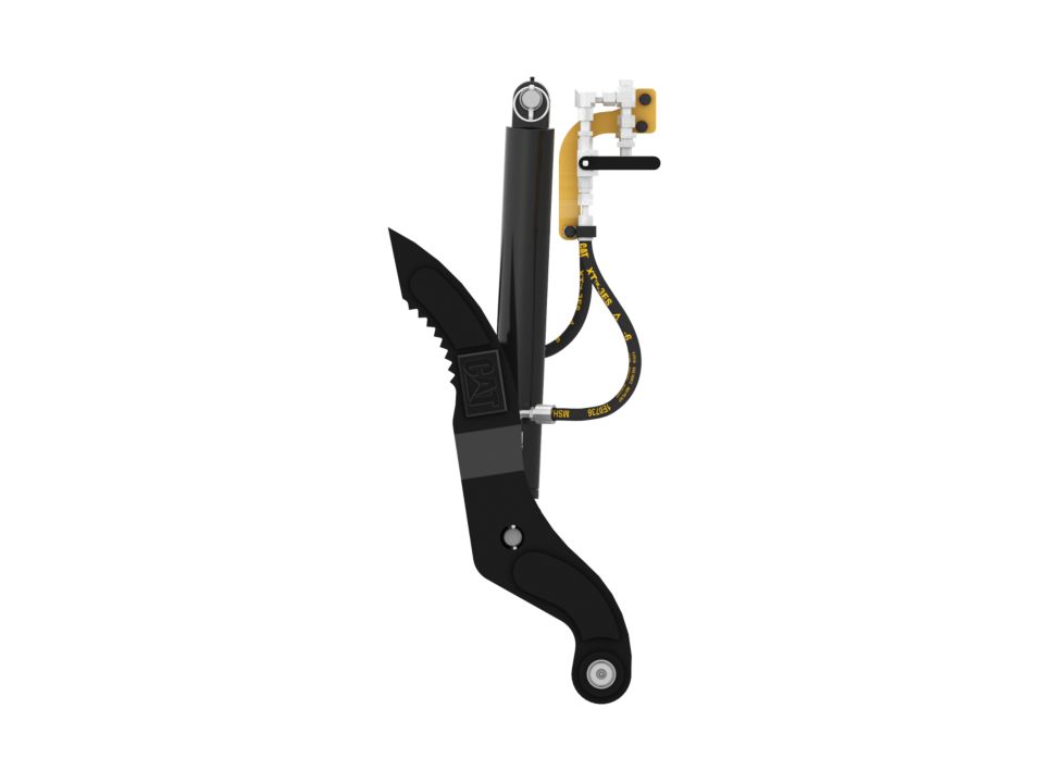 A snubber in the thumb cylinder cushions the thumb as it retracts to it's stored position, thus reducing wear on components from unnecessary jolts and frees operator to focus on other tasks.