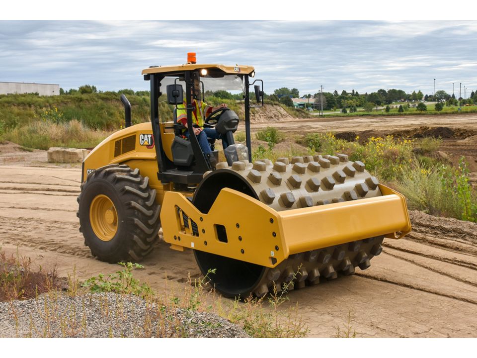 Smooth drum compactors produce consistently reliable results when compacting semi-cohesive and granular materials. With operating weights up to almost 19 metric tons, there is a Cat Soil Compactor sized to meet the most demanding production and density requirements.Padfoot drum compactors produce consistently reliable results when compacting semi-cohesive and cohesive materials. Pads are tapered and penetrate deeply into the soil to build strength from the bottom up. Small pad face area concentrates force to deliver the highest compaction energy so production goals are met with fewer units and less fuel consumed.All dual-amplitude models feature an exclusive Cat eccentric weight design that assures positive amplitude selection while preventing contamination of the weight shaft bearing lubrication.