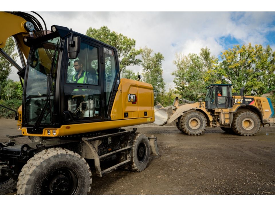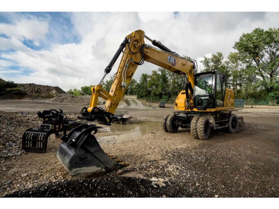 • Optional Cat Payload helps you achieve precise load targets to improve your operating efficiency. Pick up a load of material – with a bucket and thumb combination or grapple and clamshell attachments – and get a real-time weight estimate without swinging.