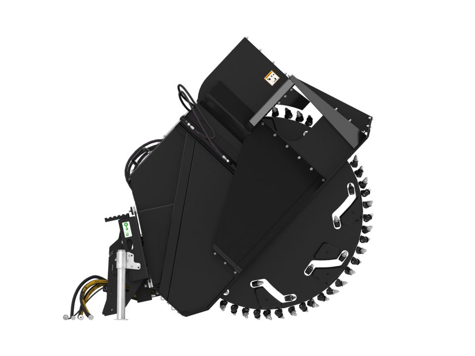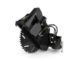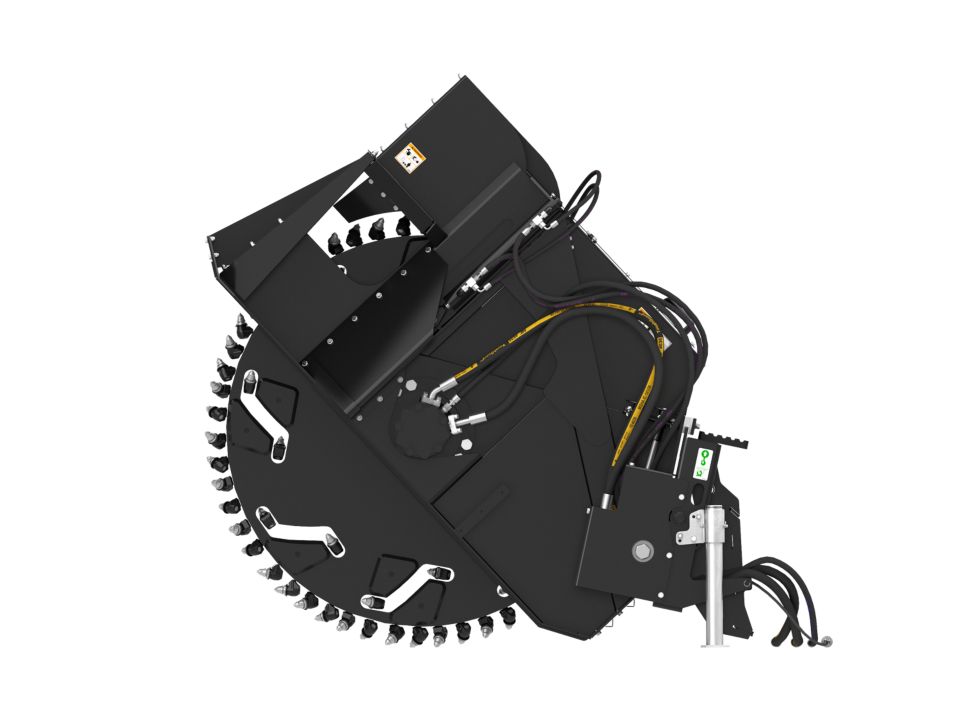 Hydraulic side-shift and depth control is standard on all models and is controlled from the operator's compartment. Hydraulic side-shift allows wheel positioning from center to the far right of center. This allows for cutting close to curbs, walls and other obstructions, and minimizes need to reposition the machine.
