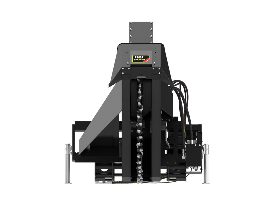 Cat® Wheel Saws are designed for high performance trench cutting on a variety of hard or compact surfaces such as asphalt, reinforced concrete, and rocky or frozen ground.