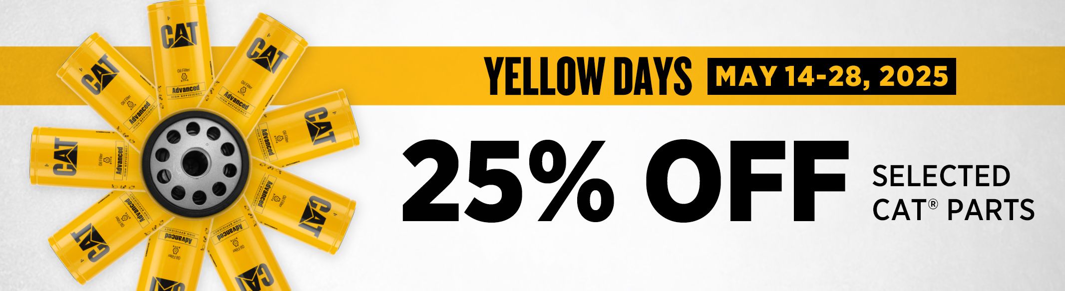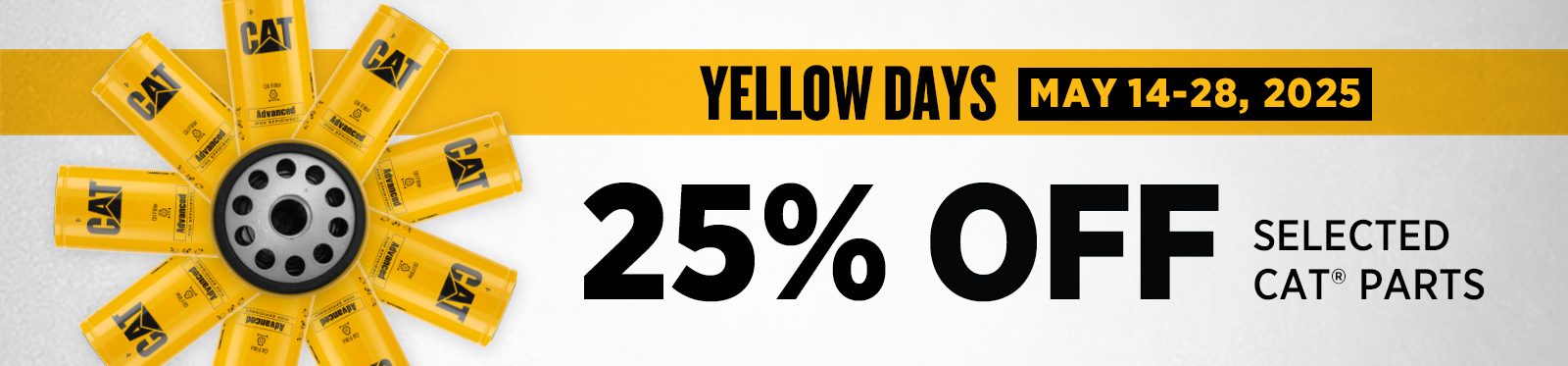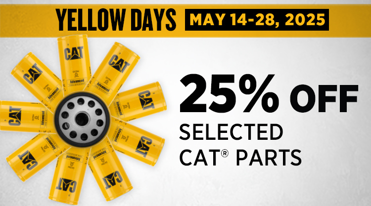 As summer approaches, it's time to ensure your equipment is in top shape for your busy season. Regular maintenance and timely servicing are key to keeping your machinery strong and ready for any task. From May 14th to May 28th, take advantage of our special offer and save 25% on Cat® filters, Cat® alternators, Cat® starters and Cat® rubber tracks.